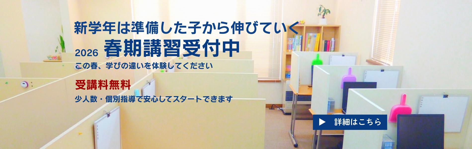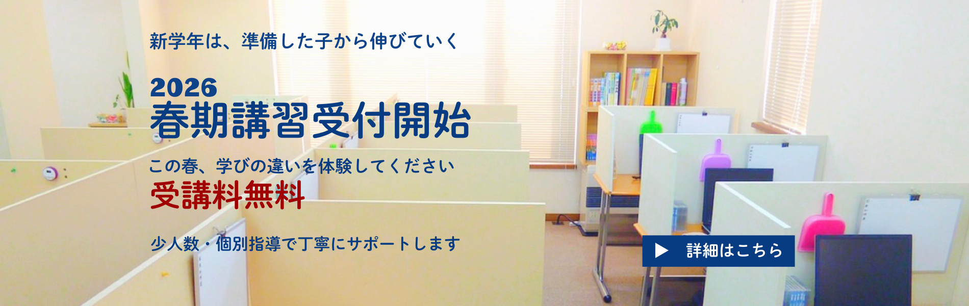 - 春期講習会受付スタート!新学年に向けて、春期講習会の受付を開始しました。 春は新学年に向けた大切な準備期間です。この時期に基礎を確認し、理解を深めながら次学年へスムーズに進めるよう、一人ひとりの理解度に合わせた指導を行います。 悠学館では最大6 […]